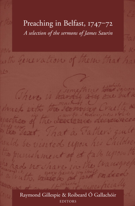 In 1747 James Saurin, a descendant of a prominent Huguenot family, was appointed as vicar of Belfast. One of his first acts was to write a series of sermons that he preached to his congregation over his long tenure as vicar. Many he recycled a number of times since they were, for him, fundamental statements of belief and its meaning in the contemporary world. Some fifty-five of these sermons have recently been discovered in St Anne’s cathedral in Belfast, having been preserved and used by Saurin’s son and his grandson for their preaching. This edition collects some twenty of the sermons. They reflect on a wide range of questions. How did one maintain social order in a rapidly changing town? What did it mean to be part of the religious establishment in a town where the Church of Ireland was a minority? What political positions might the inhabitants of radical Belfast assume and how did a preacher deal with the needs of his flock through Christmas, Easter, Confirmations and other key moments in their lives? This unique collection of sermons provides a vivid insight into the mind of a Church of Ireland clergyman in a rapidly changing provincial town at the middle of the eighteenth century and illuminates many of the key issues of the world of provincial Ireland.