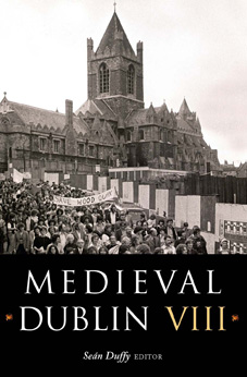This 8th volume of proceedings of the annual Friends of Medieval Dublin Symposium contains reports on recent archaeological excavations: Edmund O’Donovan’s excavation at Golden Lane produced early Viking burials, while Claire Walsh found traces of an early pre-Viking roadway nearby at Chancery Lane, and Roseanne Meenan reports on investigations in Stephen Street Lower. Linzi Simpson suggests that the graveyard known as Bully’s Acre may have been part of the early medieval monastery of Kilmainham, Nessa Walsh examines the pre-Romanesque churches of Dublin, while Michael Gibbons offers a reassessment of the relationship between the 9th-century Viking longphort and the origins of urbanization in Ireland. Alan Fletcher presents an overview of the annals and chronicles surviving from the later-medieval city, Raymond Gillespie, by shedding light on the ‘City Chronicle’, considers the way Dubliners viewed themselves in the 15th and 16th centuries, and Bernadette Cunningham explores the portrayal of later-medieval Dublin in the annals from Gaelic Ireland. Also included is Andrew McDonald’s assessment of the effects on Dublin–Manx relations of the English conquest of Ireland in the late 12th century.