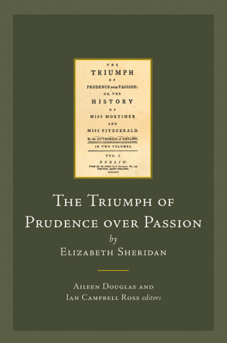 Originally published in 1781, The Triumph of Prudence over Passion; or, The History of Miss Mortimer and Miss Fitzgerald is an unconventional epistolary novel set in Ireland and France in 1779 and 1780, against the background of the patriot political agitation that marked the age of Grattan’s parliament. The young women who write the bulk of the novel’s letters link the state of Ireland and the condition of its women, powerfully endorsing liberty for both. Their witty and incisive commentary on political events, male and female relations, education and national differences, is accompanied by lighter observations on fashion, polite amusements and affairs of the heart. Yet, while the novel contains several love stories, it departs strikingly from fictional convention by having its heroine refuse to marry her suitor, preferring instead to remain in a single state. The novel, published anonymously, is here attributed for the first time to Ann Elizabeth (Betsy) Sheridan, daughter of the novelist Frances Sheridan and the theatre manager and elocutionist Thomas Sheridan, and sister to the playwright Richard Brinsley Sheridan. Elizabeth Sheridan is best known as author of Betsy Sheridan’s Journal, comprising the lively letters from the 1780s written to her sister Alicia Le Fanu.