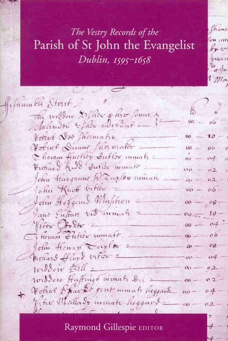 The importance of parish records for the reconstruction of many aspects of past societies is becoming clear from research in other countries. Irish parochial records, however, have not survived well. This volume provides an edition of what is probably the most important set of vestry records in Ireland. The records of the parish of St John in Dublin form the oldest continuous set of vestry minutes, churchwardens’ accounts and local taxation records in existence. Situated as the parish was in the core of the medieval city, these documents provide a unique insight into the world of an urban parish in the throes of transition as Dublin moved from a medieval into a modern world. The text casts light not only on the problems of the established church but also on the everyday life of the parishioners as they struggled to maintain the church and the world associated with it in the face of dramatic urban change. This volume will be of interest not only to those concerned with Dublin and religious history but to everyone interested in urban change in the early modern world.