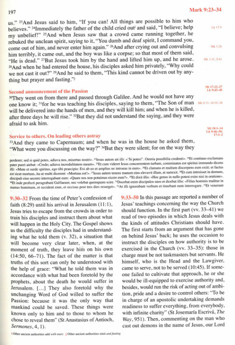 The distinguishing feature of the Navarre Bible is its commentary on the biblical text. Compiled by members of the Theology faculty of the University of Navarre, it draws on writings of the Fathers, texts of the Magisterium of the Church, and works of spiritual writers, including St Josemaría Escrivá; it was he who originally entrusted the faculty at Navarre with the project of making a translation of the Bible and adding to it a commentary of the type found here. The commentary, with its introductions, is designed to explain the biblical text and to identify its main points, the message God wants to get across through the sacred writers. It also deals with doctrinal and practical matters connected with the text. This book is the first edition of a Navarre New Testament with the following features:
