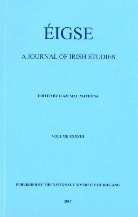 Éigse is devoted to the cultivation of a wide range of research in the field of Irish language and literature. Many hitherto unpublished texts in prose and verse ranging from Old Irish down to the modern language and including items from oral narration have appeared in its pages. It regularly includes important contributions on grammar, lexicography, palaeography, metrics and the history of the Irish language, as well as on a wide variety of Irish literary topics. There is a special emphasis on all aspects of the study of the language and literature of Modern Irish.